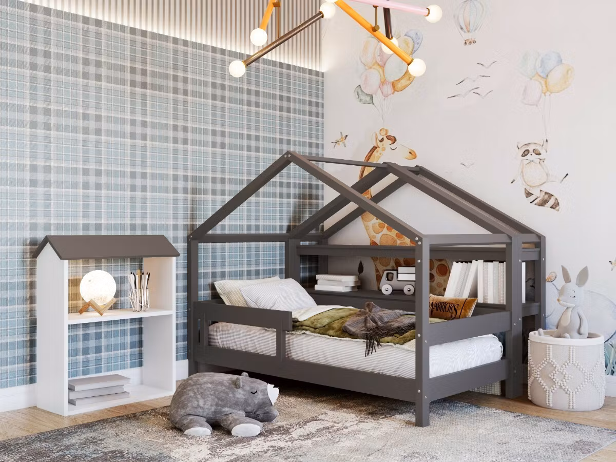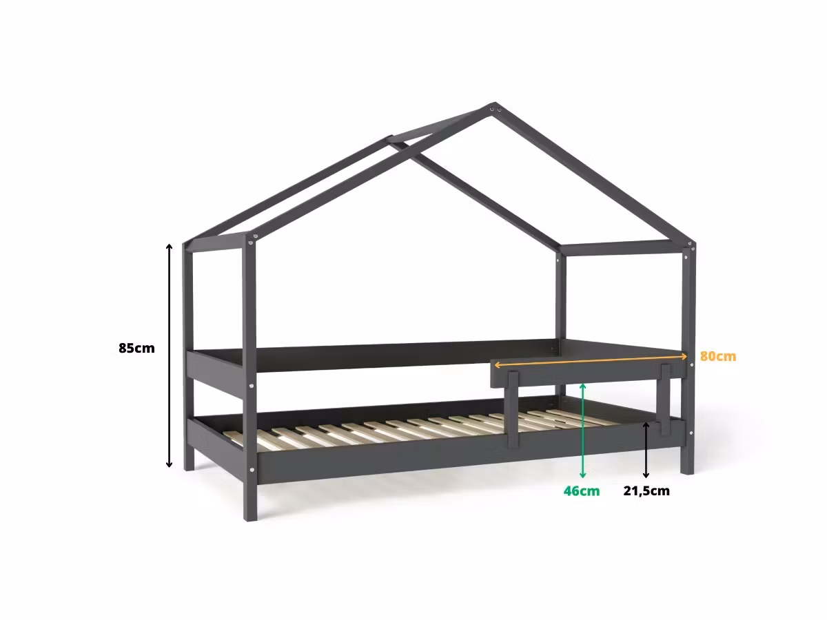 Denna säng är en kombination av original design och funktionalitet. Sängdesignen ger en riktigt mysig känsla i barnrummet. Hussängar är ett utmärkt val för barn, för tack vare deras tilltalande och lekfulla design kommer barnet att vilja sova där och anpassningen från en babysäng till en barnsäng kommer att ske snabbare.
