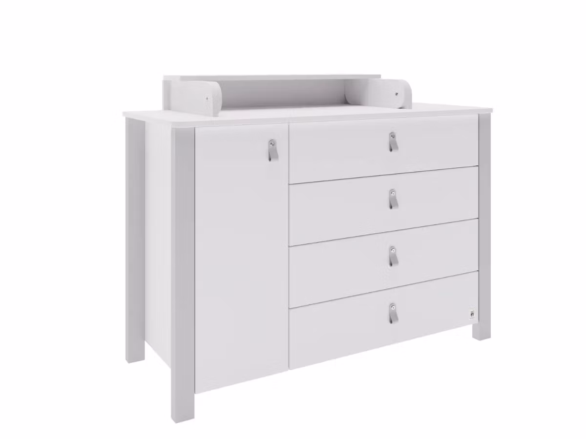 Byte kan fästas från antingen vänster eller höger sida av byrån. Efter tid en omklädningsskiva kan tas bort och du kommer inte ha synliga hål vid toppplattan. Så det är en produkt med lång livslängd.
