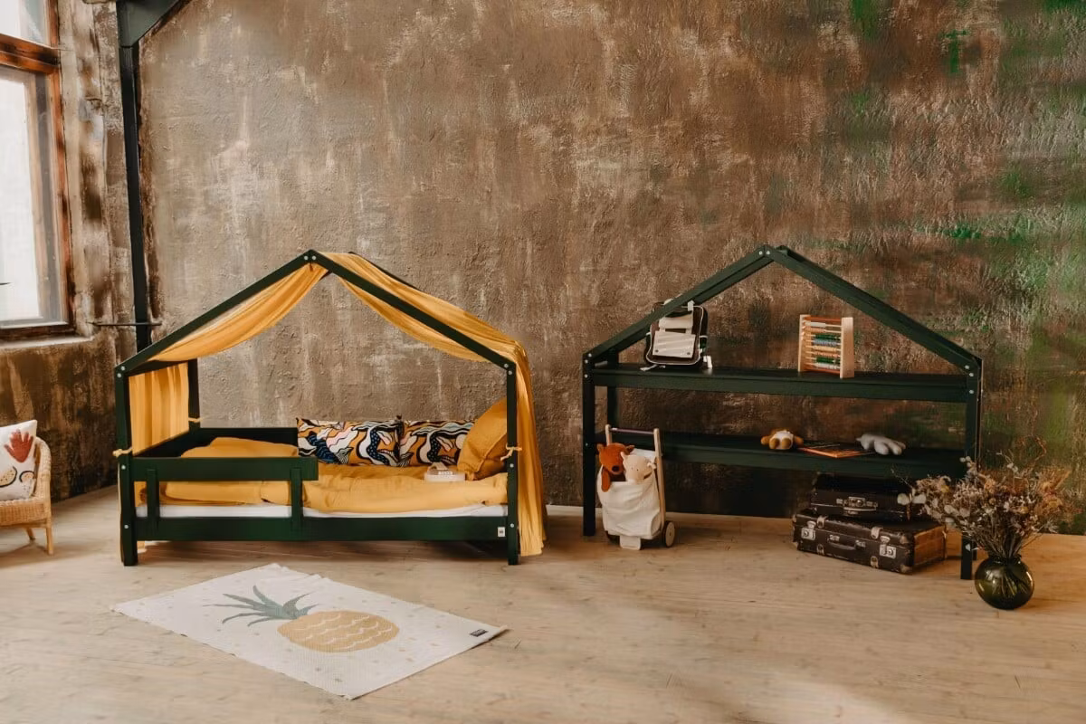 Denna säng är en kombination av original design och funktionalitet. Sängdesignen ger en riktigt mysig känsla i barnrummet. Hussängar är ett utmärkt val för barn, för tack vare deras tilltalande och lekfulla design kommer barnet att vilja sova där och anpassningen från en babysäng till en barnsäng kommer att ske snabbare.