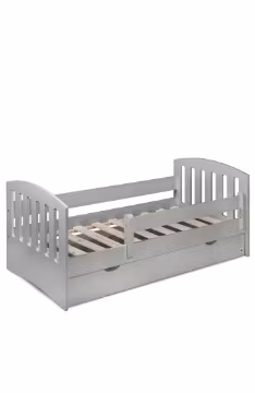 Barnsäng med vacker skandinavisk design kommer att vara en bra lösning för föräldrar som letar efter en sovplats för sin bebis när den har vuxit från en liten spjälsäng. För ditt barns säkerhet är det möjligt att fästa sidan av skyddet (ingår) genom att låsa det på ena eller andra sidan av sängen. I setet ingår även en rymlig låda, som rymmer både leksaker och sängkläder. Storleken på sängen kommer att vara tillräckligt bekväm för att föräldern ska sitta bredvid honom och läsa en saga för barnet innan sänggåendet, men samtidigt tar den inte mycket plats i rummet. Lämplig för 160 x 80 cm madrass. MADRASS INGÅR EJ! Material: Furu, MDF Vattenbaserade färger och lacker. Vård: ? Rengör med en fuktig bomullstrasa. Torka sedan torrt.