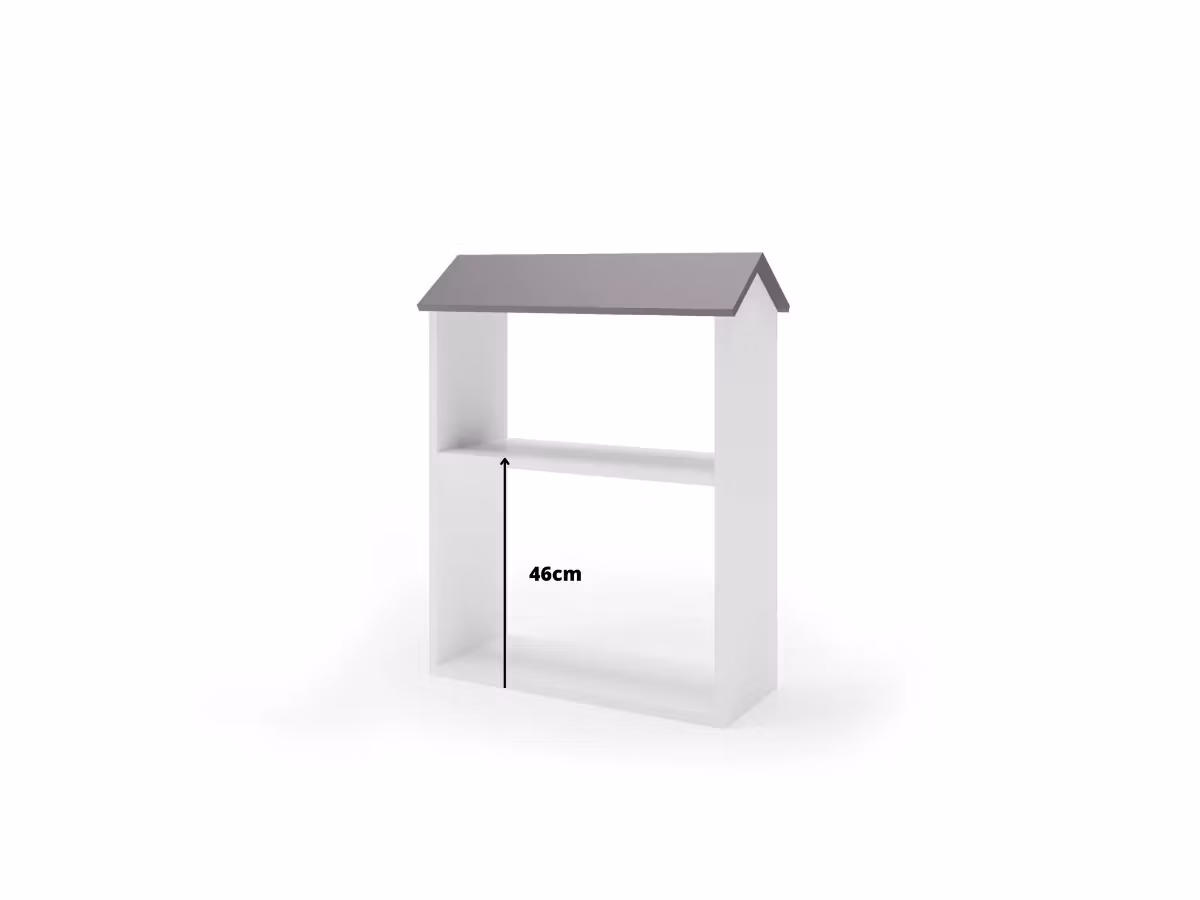 Denna lilla husformade hylla ger en lekfull touch till ditt barns rum samtidigt som den ger funktionellt förvaringsutrymme för böcker, leksaker och andra småsaker.