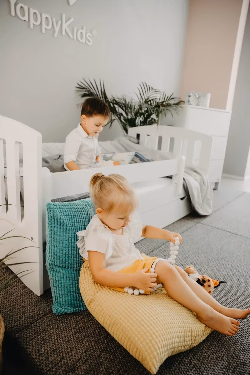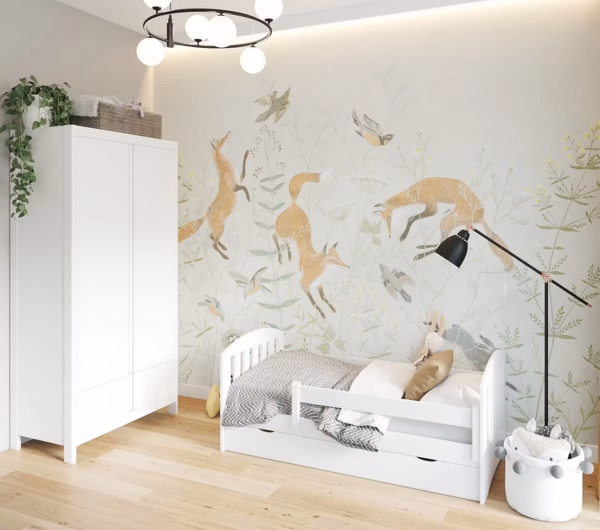 Barnsäng med vacker skandinavisk design kommer att vara en bra lösning för föräldrar som letar efter en sovplats för sin bebis när den har vuxit från en liten spjälsäng.