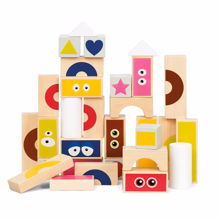 30 härliga träklossar med Babblarnamotiv. Byggklossarna har blandade färger och former, några med Babblarnas ögon och andra med roliga färger och former. Träklossar är klassiska leksaker som stimulerar barnens fantasi och utvecklar koordinationsförmågan. När barn babblar, pratar, sjunger och leker tillsammans med Babblarna, utvecklar de också sitt eget tal och språk. Vad ska ni bygga av era klossar? De olika formerna och färgerna ger oändliga lekmöjligheter! FSC-märkt trä. Uppfyller kraven i leksaksstandarden EN71 och gällande kemiska regelverk REACH och SVHC.