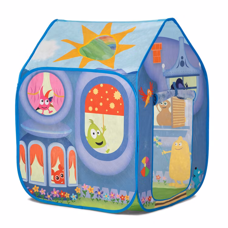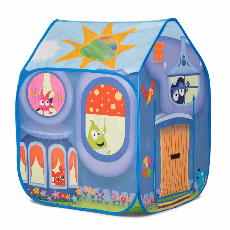 roligt lektält i tyg för alla busiga barn som gillar Babblarna! Tältet är av pop-up-modell och är snabbt redo för lek eller mys tillsammans med favoritboken. Gå in och ut genom tygdörren eller rulla upp den om du vill ha dörren helt öppen så att fler kompisar hittar in i huset. Babblarnas lektält har väggar, golv och tak av tyg och tre hål där du kan kika ut. När leken är slut kan du vika ner lektältet i den medföljande tygväskan, där tältet nästan inte tar någon plats alls och enkelt tas med på resan.
