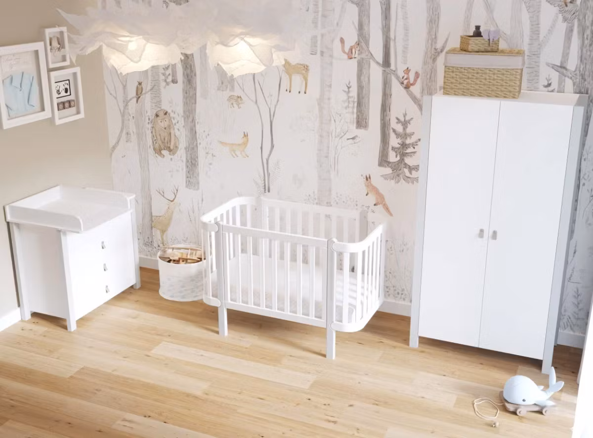 En tvådörrars garderob med 3 lådor inuti ger tillräckligt med utrymme för att förvara allt du behöver.