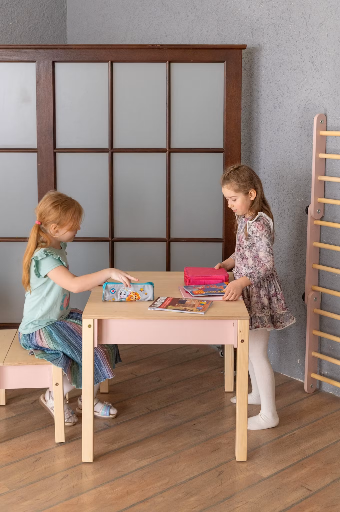 Vi presenterar vårt smarta utrymmesbesparande bord- och stolset, ett mångsidigt tillskott till alla barns lek- och studieområde. Detta set är noggrant utformat med noggrann uppmärksamhet på detaljer och är designat för att möta behoven hos både föräldrar och barn. Den kombinerar sömlöst funktionalitet med oberoende och erbjuder funktioner som föräldrar verkligen kommer att uppskatta.