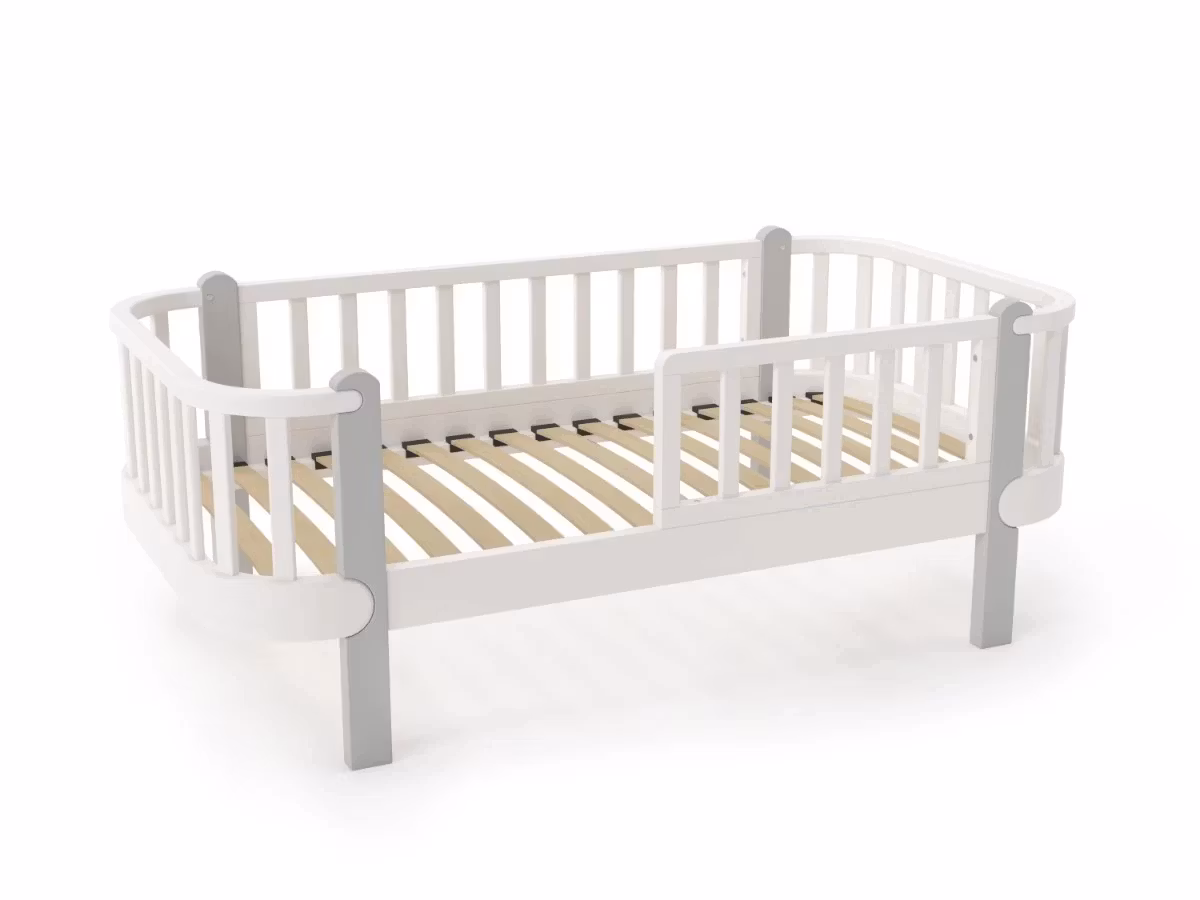 Barnsängen har specialdesignade, rundade sidor som skiljer den från andra sängar.