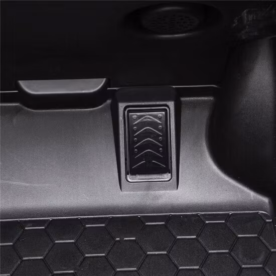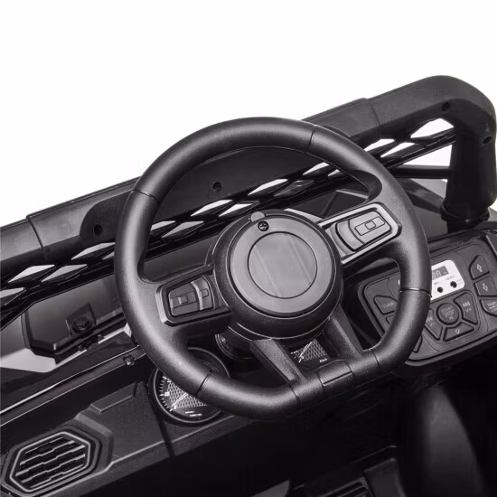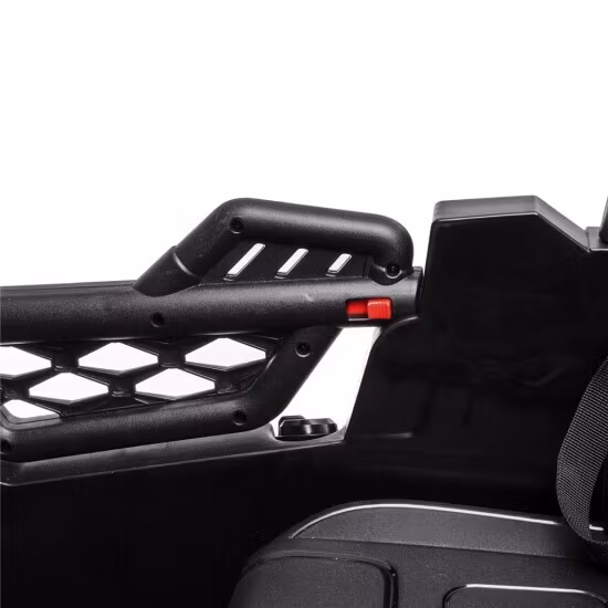 Stöder MP3, bluetooth, FM-radiofunktion, ljus, ljud, tuta, gungande funktion, realistisk instrumentbräda och design, dörrar kan öppnas, sidospeglar och säkerhetsbälte. Fjärrkontrollen använder 2x1,5V AAA-batterier (ingår ej).Max användarvikt: 30 kg