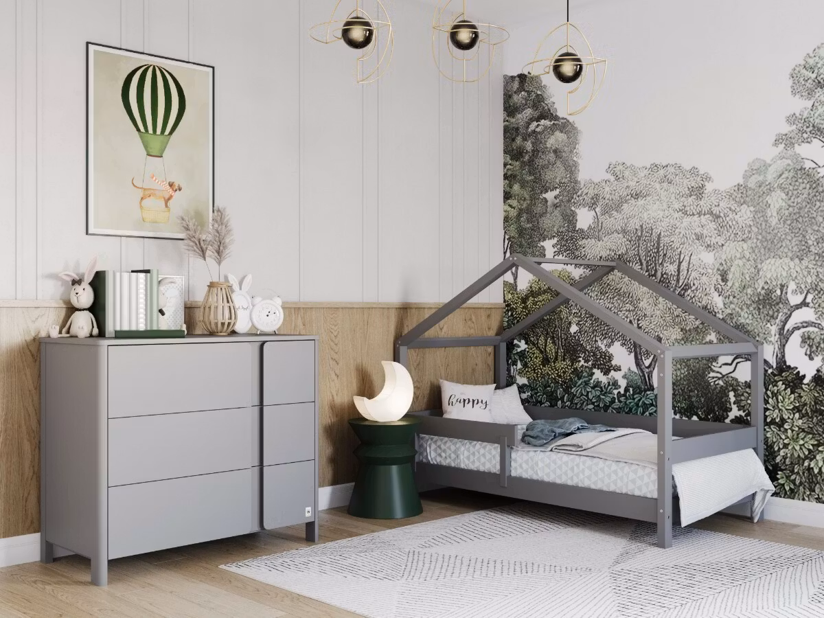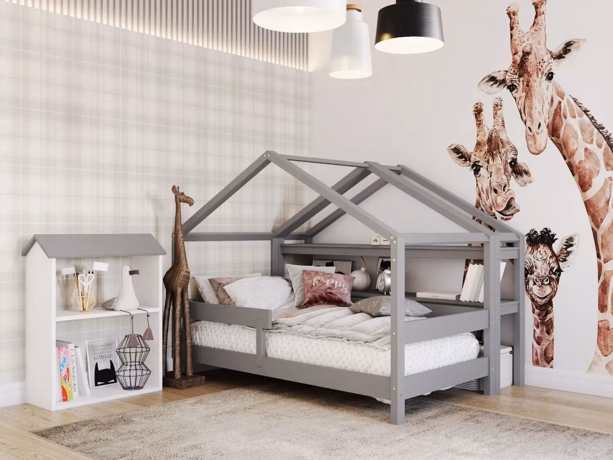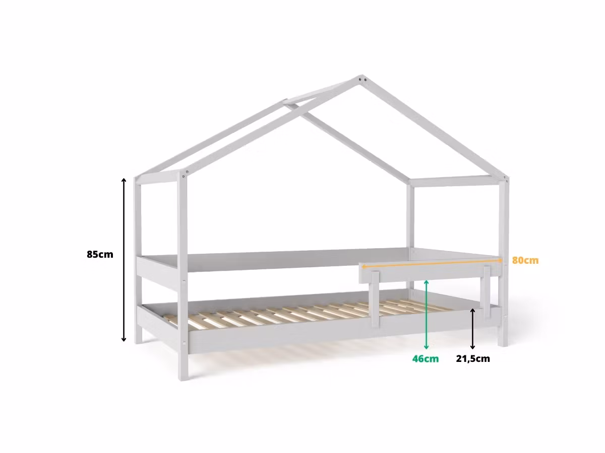 Denna säng är en kombination av original design och funktionalitet. Sängdesignen ger en riktigt mysig känsla i barnrummet. Hussängar är ett utmärkt val för barn, för tack vare deras tilltalande och lekfulla design kommer barnet att vilja sova där och anpassningen från en babysäng till en barnsäng kommer att ske snabbare.