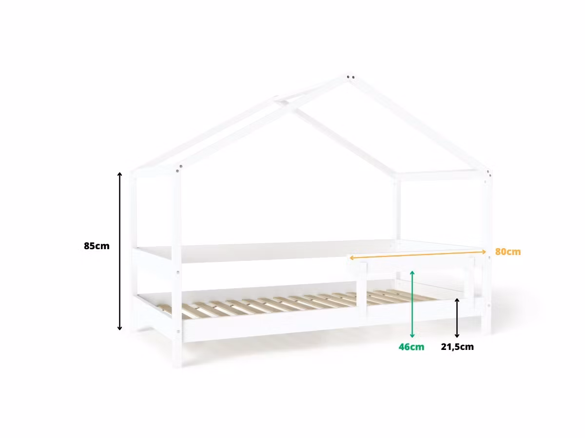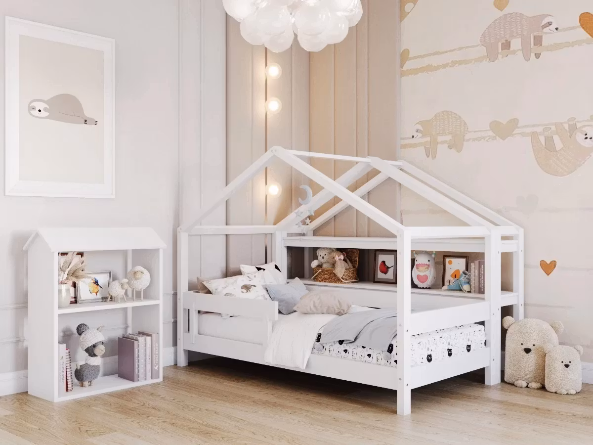 Denna säng är en kombination av original design och funktionalitet. Sängdesignen ger en riktigt mysig känsla i barnrummet. Hussängar är ett utmärkt val för barn, för tack vare deras tilltalande och lekfulla design kommer barnet att vilja sova där och anpassningen från en babysäng till en barnsäng kommer att ske snabbare.