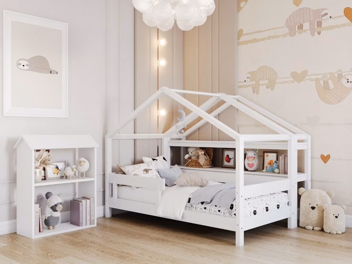 Denna lilla husformade hylla ger en lekfull touch till ditt barns rum samtidigt som den ger funktionellt förvaringsutrymme för böcker, leksaker och andra småsaker.