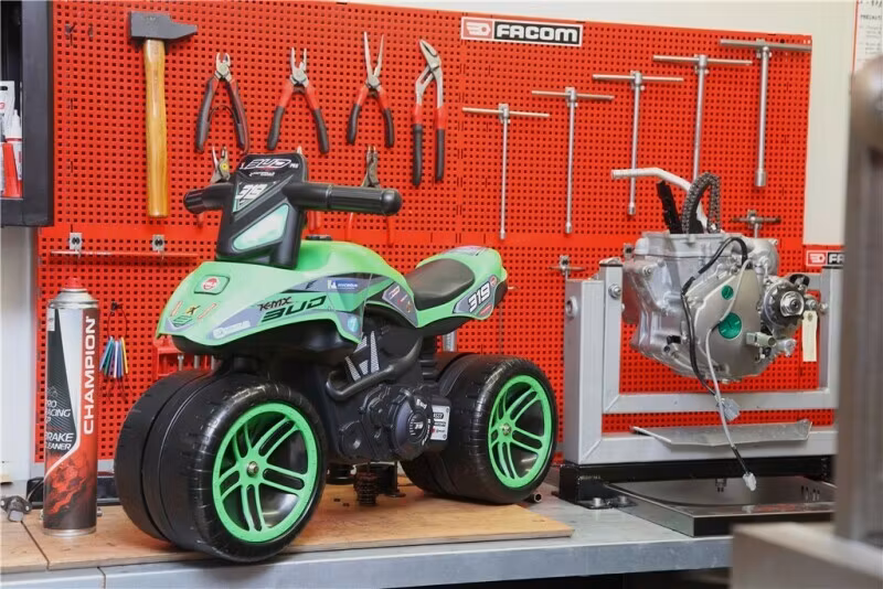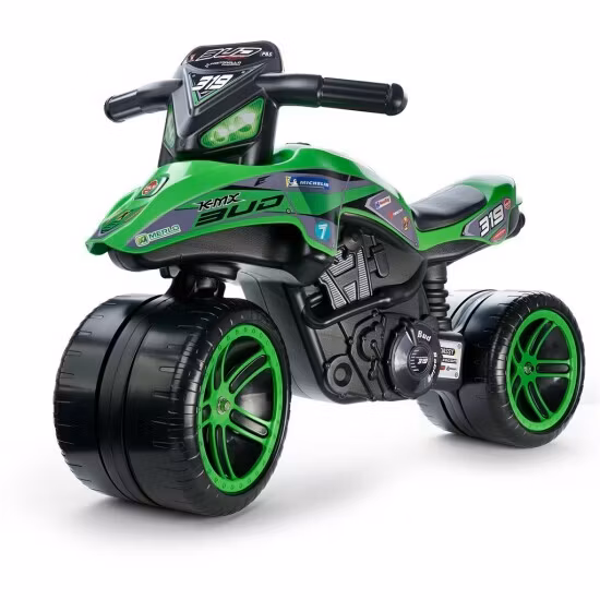 3 ... 2 ... 1! Är du redo att se din lilla racerförare på Baby Carrier-motorcykeln i färgerna som på det berömda Kawasaki Bud Racing Motorcycle Cross Team? En fin kopia av Quentin Prugnières Grand Prix cross-cykel. Den är 100% tillverkad i Frankrike och speciellt utformad för barn från 2 till 5 år som är på utkik efter ett unikt fordon. Dess breda hjul ger nödvändig stabilitet och säkerhet och utvecklar samtidigt barnets balans och motoriska färdigheter. Den är lätt att manövrera tack vare det vridbara styret så att ditt barn kommer att känna sig som en mästerlig färdplanerare. Inga fler ursäkter för att inte ta den här lilla motorcykeln med dig varje gång ditt barn är på farten - med sin lätta vikt är den lätt att ha med sig.