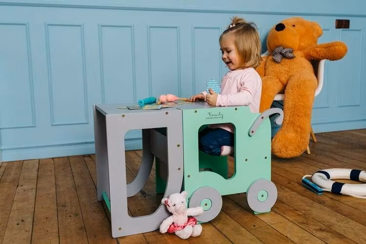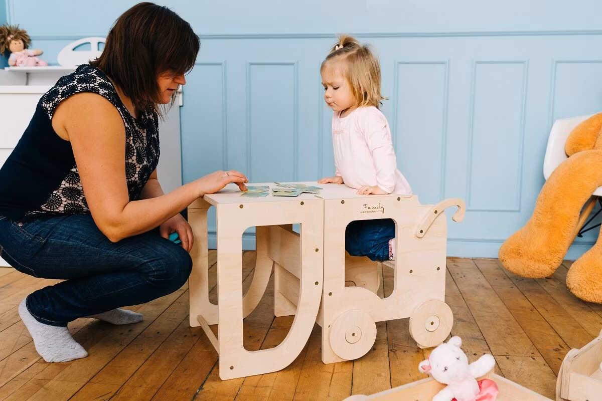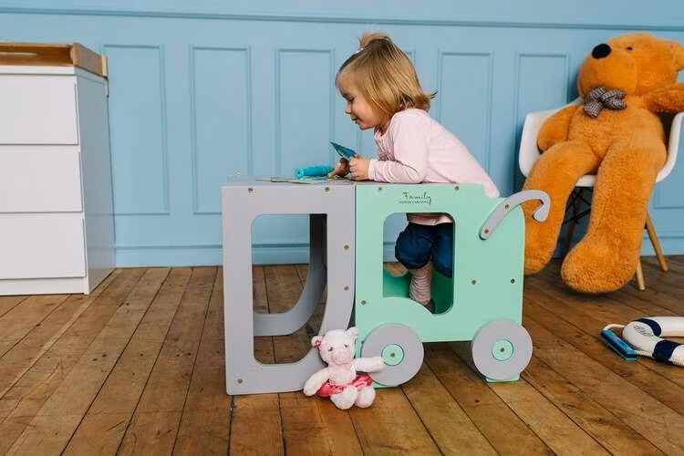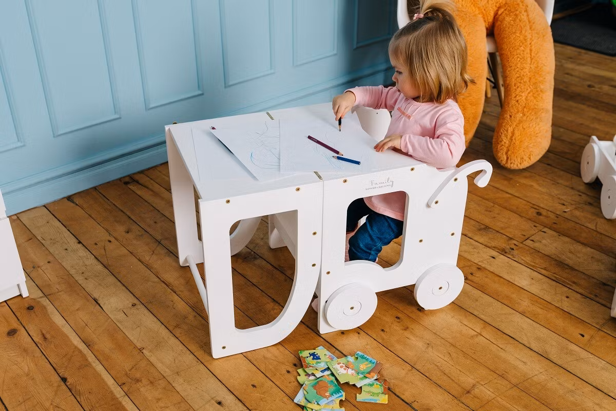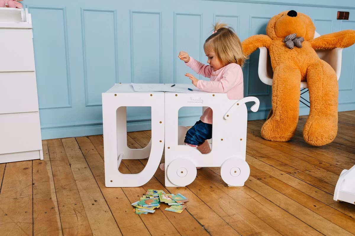 How it will help learning? Transform into table and chair form and sit next or in front of your child and read, paint or glue together.