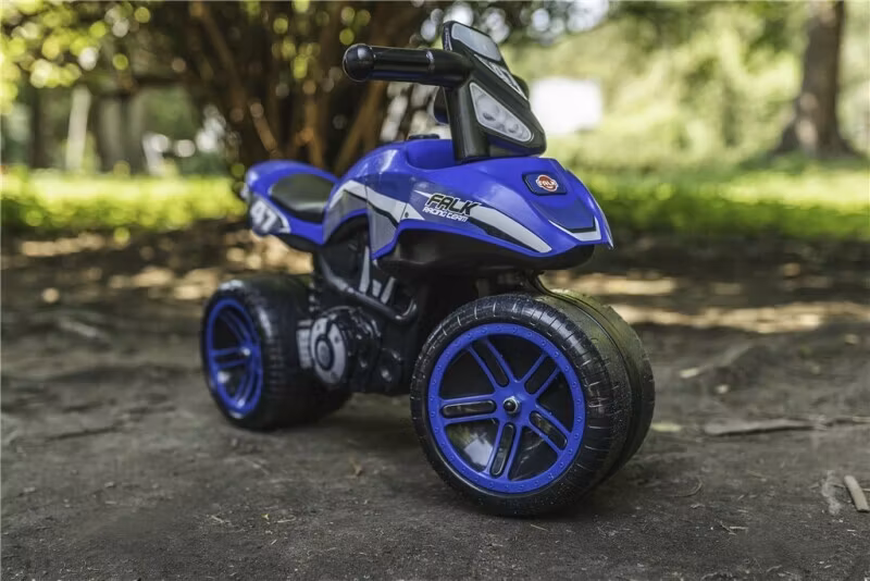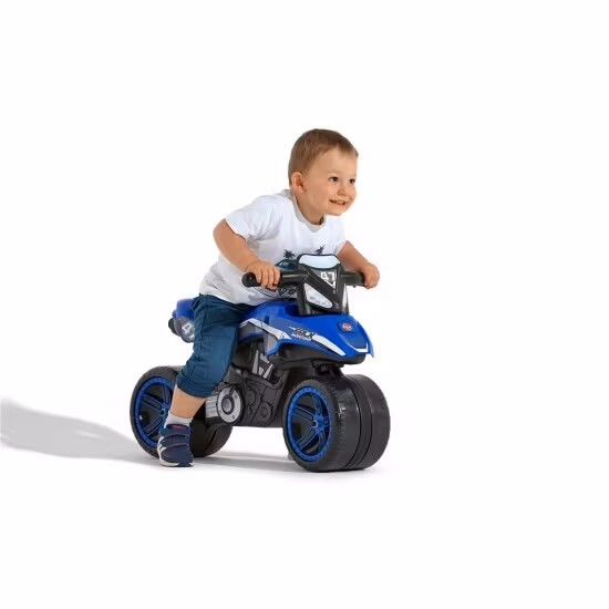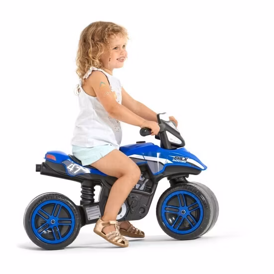 3 ... 2 ... 1! Är du redo att se din lilla racingförare på Falk Racing Team-motorcykeln? Den är 100% tillverkad i Frankrike och speciellt utformad för barn från 2 till 5 år som är på utkik efter ett unikt fordon. Dess breda hjul ger nödvändig stabilitet för att säkert utveckla barnets balans och motoriska färdigheter. Den är lätt att manövrera tack vare det vridbara styret så att ditt barn kommer att känna sig som en mästerlig färdplanerare. Inga fler ursäkter för att inte ta med sig den här lilla motorcykeln när ditt barn är på väg - den låga vikten gör det enkelt att ta med sig.