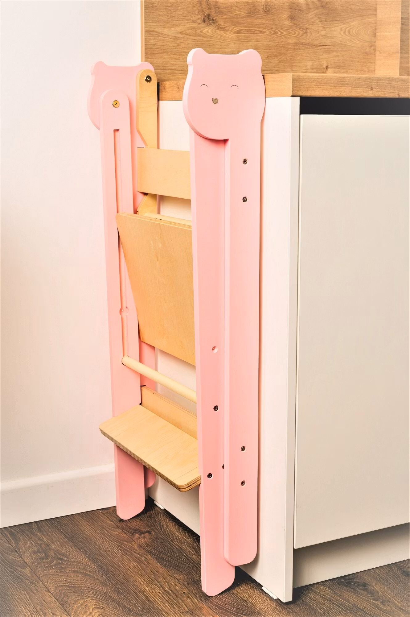 Praktisk, hopfällbar, säker och lättanvänd stegpall designad för barn. Det ser bra ut och är också en bra hjälpare för ett barn, vilket gör det möjligt att: