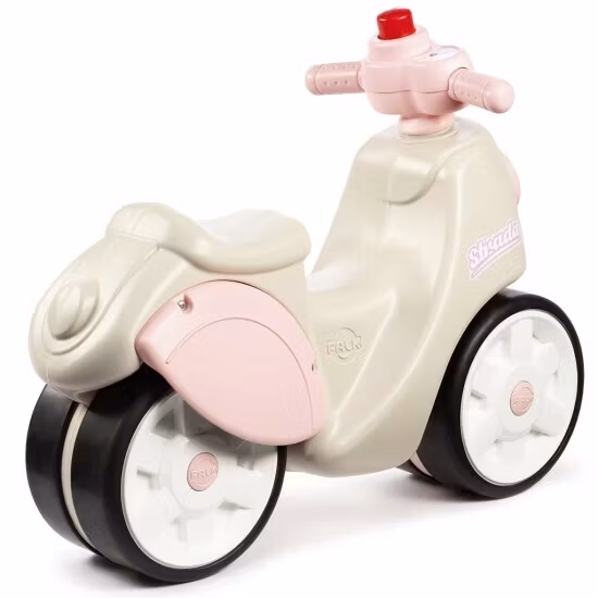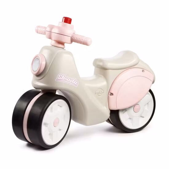 "Strada" körs som en riktig skoter tack vare sitt riktade styre, med sin lilla manuella tuta, som roade våra barn så mycket och kommer definitivt att underhålla era imorgon!