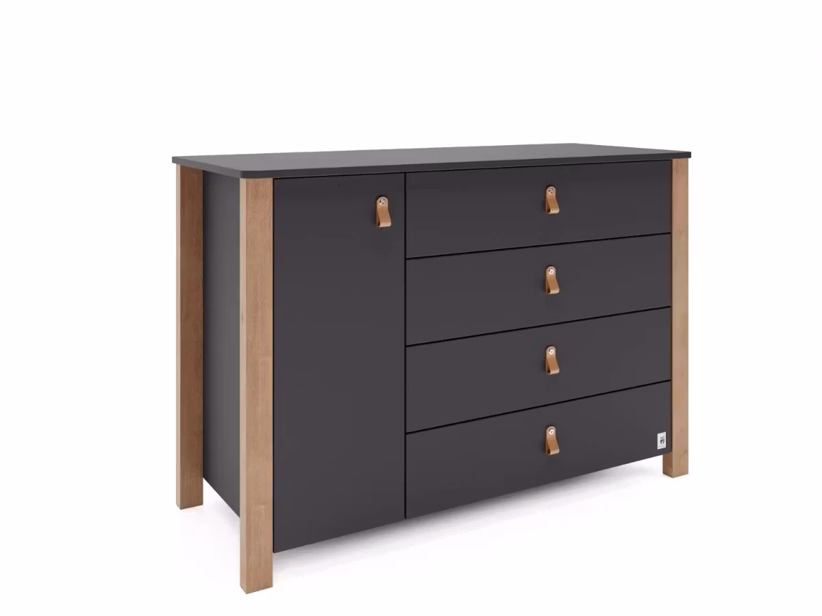 De 4 rymliga lådorna som är inbyggda i byrån ger tillräckligt med utrymme att förvara allt du behöver. Dess guider är teleskopiska, vilket gör att du kan öppna lådorna fullt.